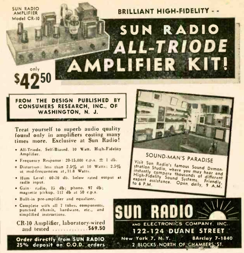 Every now and then you come across a real gem on the internet. My father was a Coast Guard electronics technician early in his career, and it’s interesting to be able to talk with my dad about electronics stuff. This morning he sent me a link to a site with old Broadcasting and Audio Engineering magazines going back to the 1920s. I look at this ad in Figure 1 from Audio Engineering of June 1949 and have to ask: “What is a Triode?” Triodes are vacuum tubes, boys and girls. Isn’t it interesting that audiophile “purists” today would buy these very tubes for a glowing, more thrilling audio experience? Admittedly, tubes are more interesting to look at than solid state.
